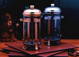 These are the 24-carat gold or Chrome plated on brass classic cafetieres made by La Cafetiere. This the original design which is approaching its 30th anniversary, a true classic.